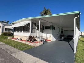 Welcome to Doral Village, a gated community in the popular Dunedin/Clearwater area. This home is available with a lot rent of $559.00 per month, which includes water, sewer, garbage, and lawn care services. The community has a clubhouse, heated pool, hot tub, and shuffleboard courts. Park activities include monthly dances and dinners, bingo, card games as well as bowling and golf leagues. This 832 sq-ft mobile home features two bedrooms, one bathroom, living and sitting rooms, screened porch and carport and comes partially furnished. Eat in kitchen includes a refrigerator, range and microwave. Vinyl plank flooring throughout. A full-size washer and dryer is housed in the attached outdoor storage shed. Vinyl siding. New roof over (2025). Just minutes from the Dunedin Causeway and Honeymoon Island State Park. Close to shopping, restaurants, hospitals and charming downtown Dunedin.